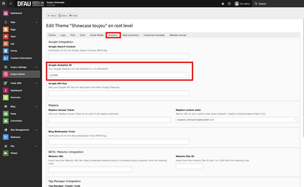 - mplement the GA4 property on your website. In toujou, you can easily enter the GA4 tracking ID yourself. Therefore go to the settings of the toujou theme and then to the Analytics tab.