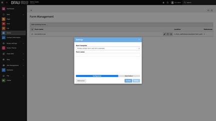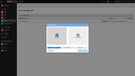 When you click on the + icon at the left of the form name, a pop-up window will open. You can choose between a blank new form and a pre-existing one.