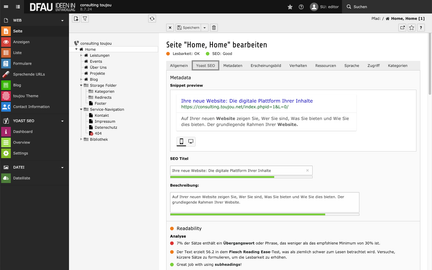 In the tab Yoast SEO simple handling of URLs and snippet editing were combined. It is only available for users of the Yoast extension.