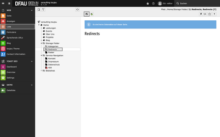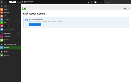 The new system extension »Redirects« offers a flexible handling of HTTP redirects. For this purpose, the new »Redirects« module is located in the higher-level »Site Management« menu, in which you create and manage redirects.
