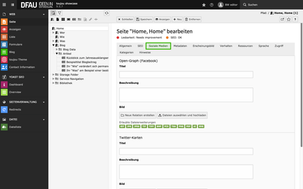 Since TYPO3 now offers the back-end functions for SEO purposes out of the box, the previously summarized settings in the Yoast SEO tab have been dispersed into three tabs: »General«, »SEO« and »Social Media«.