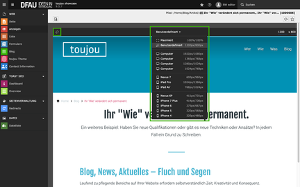 From now on, when checking your website within the back end, there are even more standard viewports to choose from. You can now easily switch between portrait and landscape format for flexible control of the responsive behaviour of the content.