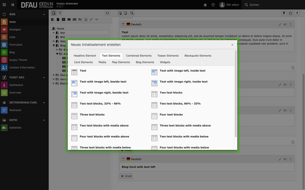 In the latest TYPO3 version, the buttons for saving your entries are no longer offered in a drop-down menu. Instead, TYPO3 has gone back to the direct display of all available buttons, which some users may remember from previous versions. For new items, the first three options are Close, Save, and View. For existing elements, the options New and Delete were added.