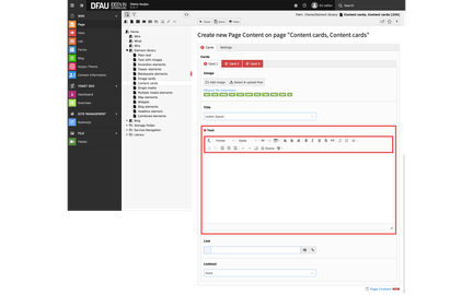 - The text can be formatted directly within the rich text editor, with the help of the menu above the editor.