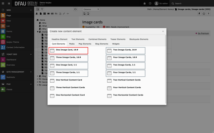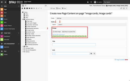 One or multiple linked image cards. Choose between 16:9 and square format.