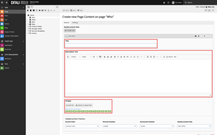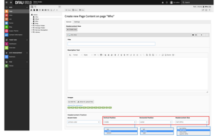 - Header elements are only selectable as elements in the header area (Kopfbereich) of your page.