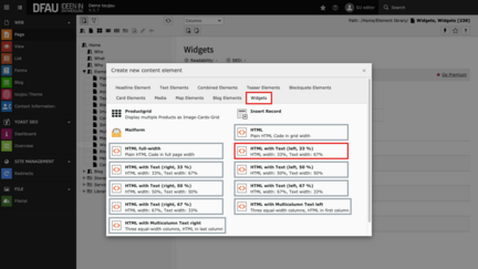 - Select the HTML element of your choice in the Widgets tab.