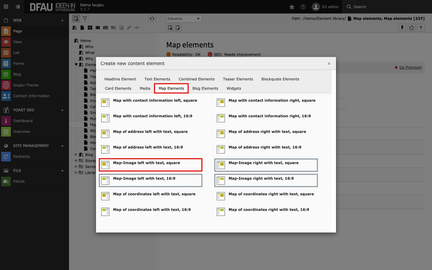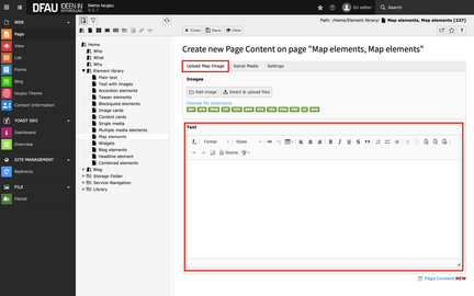 Responsive behaviour: If there is not enough space to display map and text area next to each other, all maps will show the information directly below. This ensures the consistent appearance of all maps on small devices, regardless of the original orientation.
