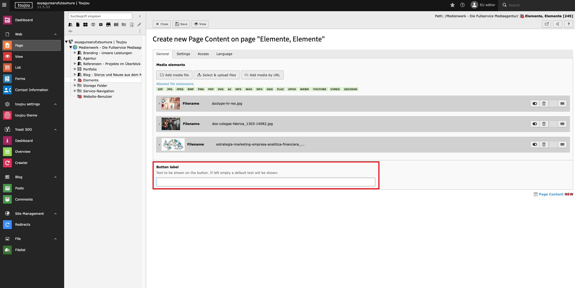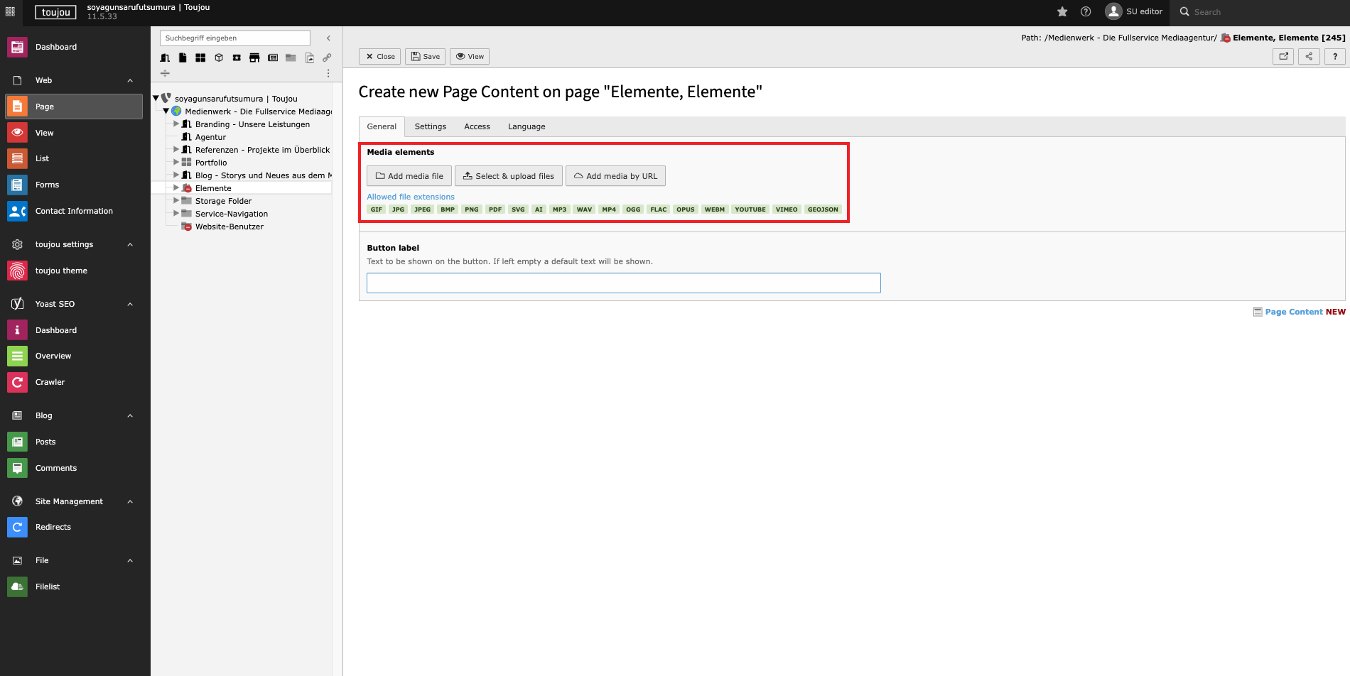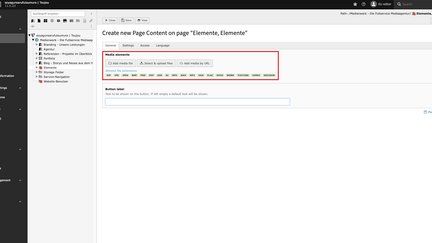 - To add as many media elements as you want, click on the "General" tab, then under "Media Elements," choose one of the three options: Add Media File, Select and Upload Files, or Add Media by URL. (For all information on uploading images.)
