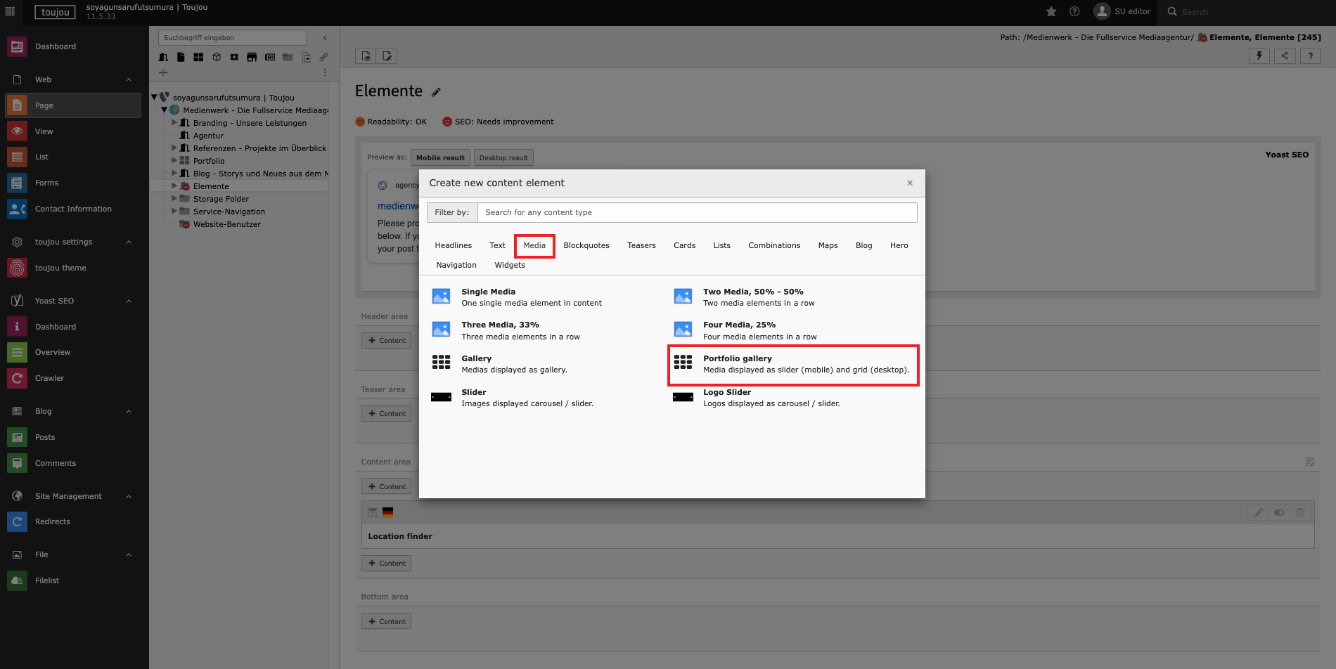 - Then, select the Portfolio Gallery option in the Media tab.
