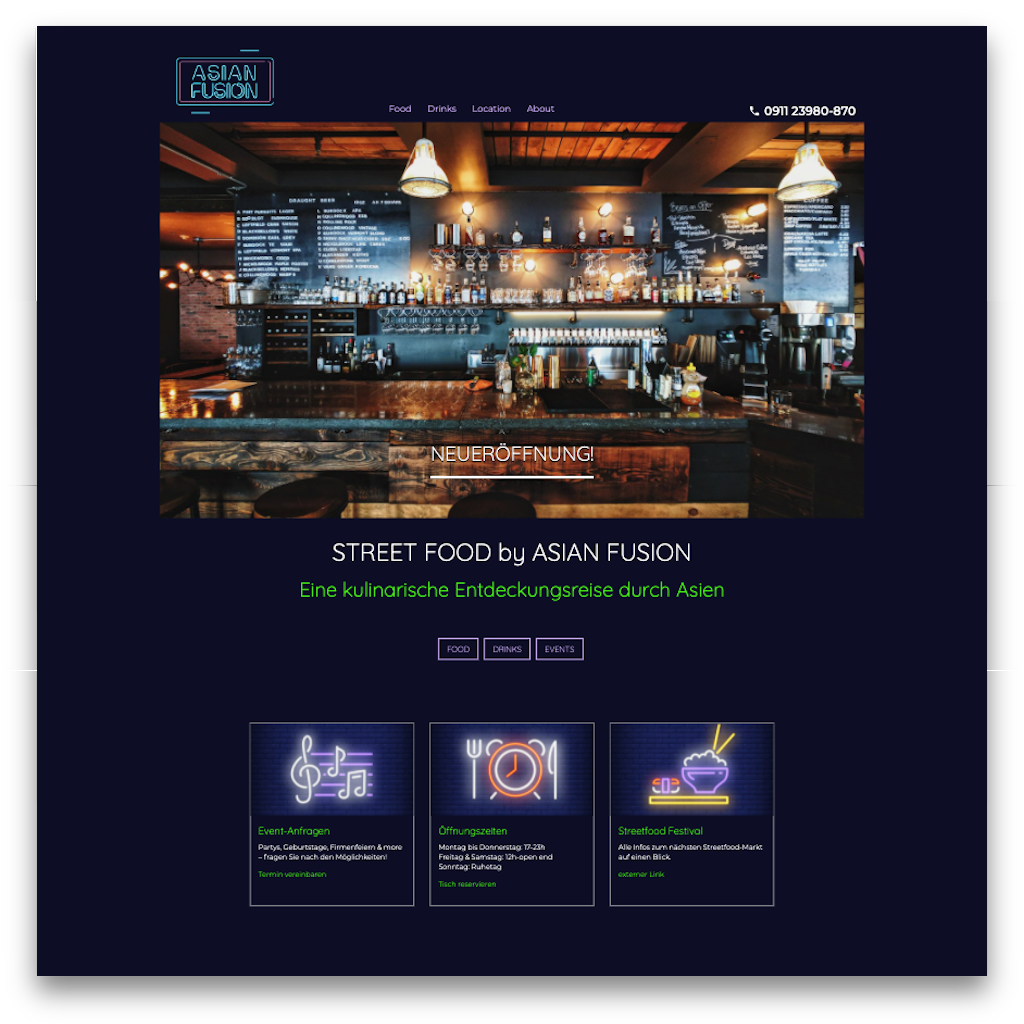 Responsive: From a width of at least 840px, the Portfolio Gallery is displayes as a grid. On devices with less width in pixels, the element is displayed as a slider.