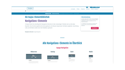 On this page you will find all navigation elements in toujou. We've used dummies in the library to prevent confusion.