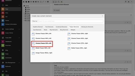 - In the Teaser Elements tab, select the Cinema Teaser 33%, left.