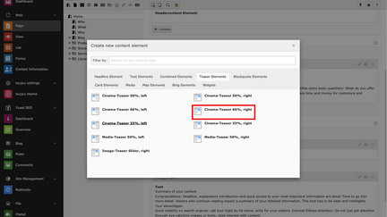 - In the Teaser Elements tab, select the Cinema Teaser 66%, right.