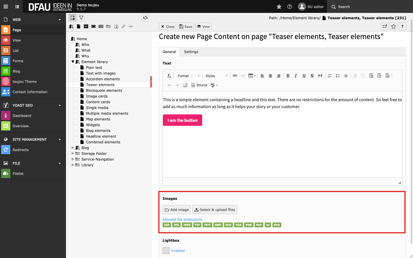 toujou set-ups & TYPO3 tutorials related to this element description.