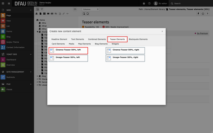 - Keep in mind that the format of the Cinema teaser is already specified to the 16:9 format and can only be edited by the size of the image section.