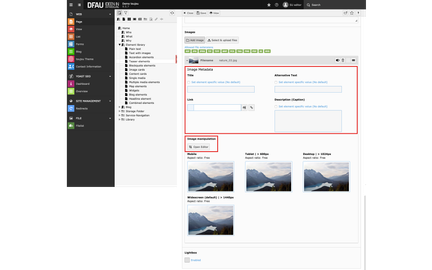 - The ratio and size of the image can be adjusted in the Image manipulator by clicking Open Editor.