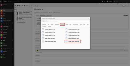 - In the Teaser Elements tab, select the Image-Teaser Slider, left.