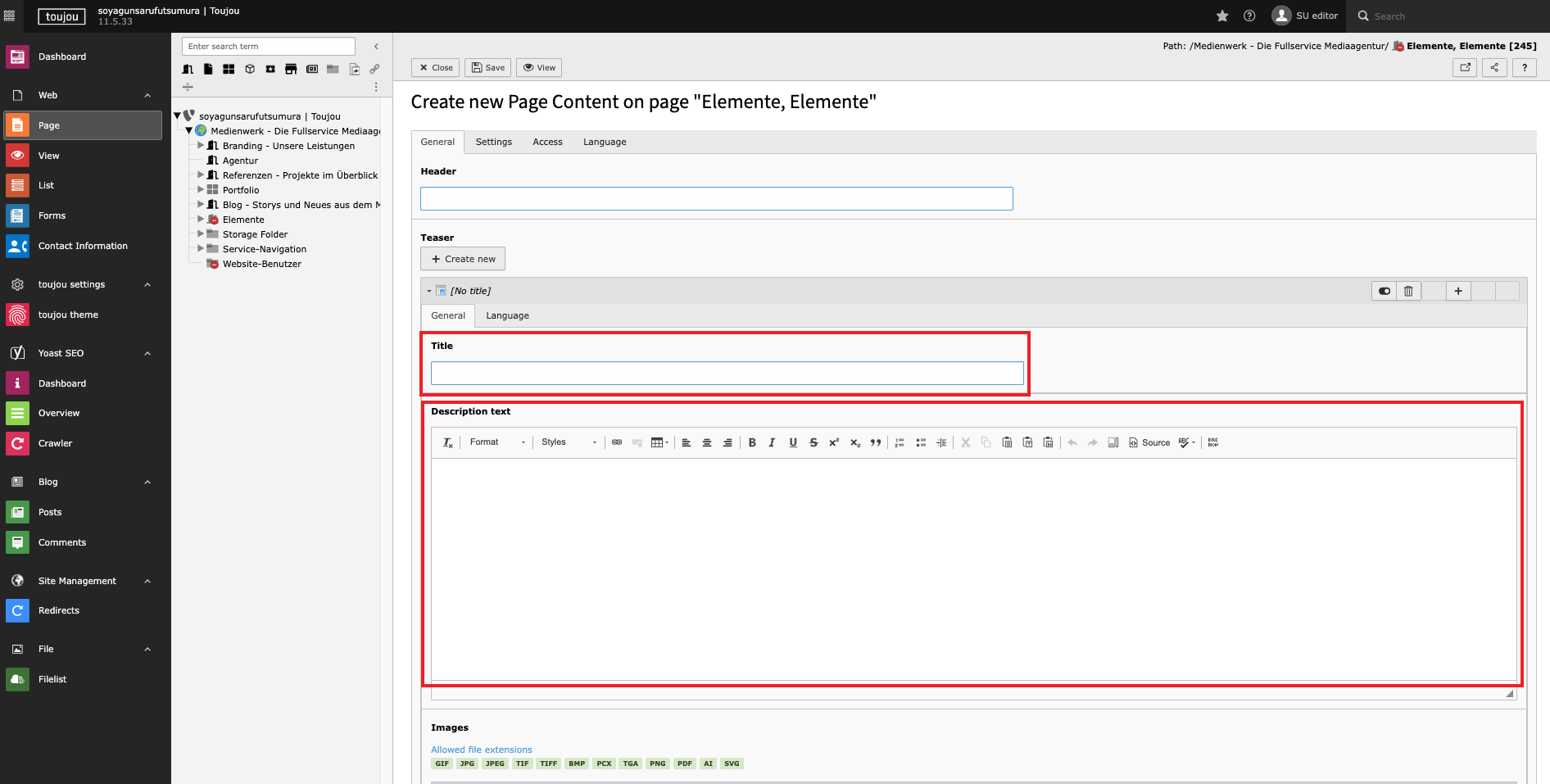 toujou set-ups & TYPO3 tutorials related to this element description.