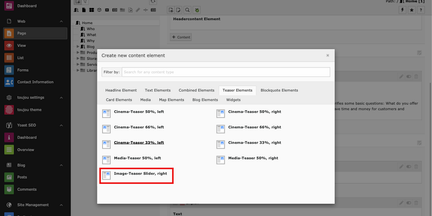 - In the Teaser Elements tab, select the Image-Teaser Slider, right.