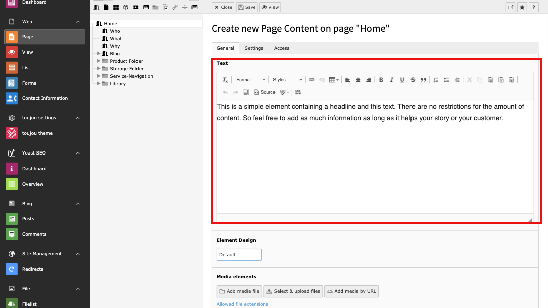 toujou set-ups & TYPO3 tutorials related to this element description.