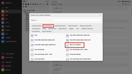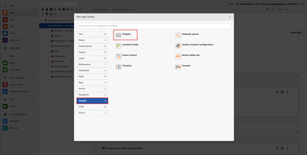 With the chapter element you can define individual areas on a page of your website, where individual designs can be deposited and individual chapters can be created.