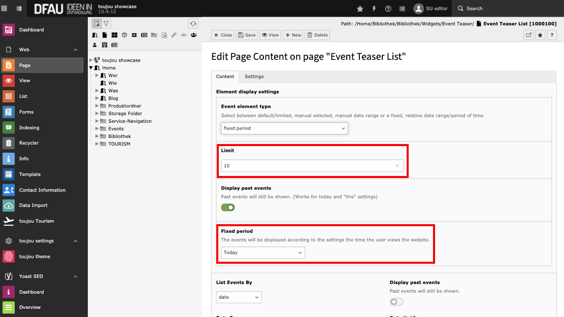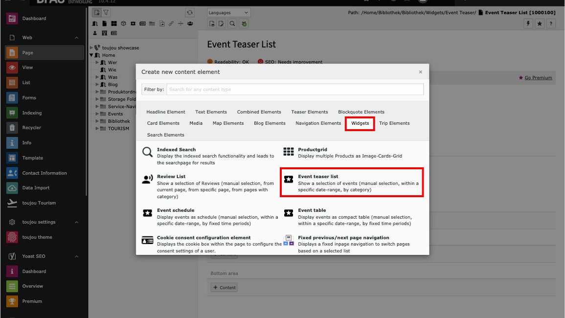 Before you can use the Event teaser list element for the Frontend of your website, the events must first be added using the event pages. We will explain how to create events in toujou in this tutorial.
