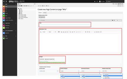- The element is only visible and useful if you want to create more than one image with content. Otherwise, please use the Header content element.