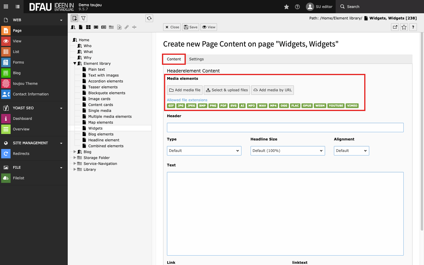 toujou set-ups & TYPO3 tutorials related to this element description.