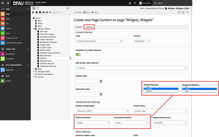 - Header elements are only selectable as elements in the header area (Kopfbereich) of your page.