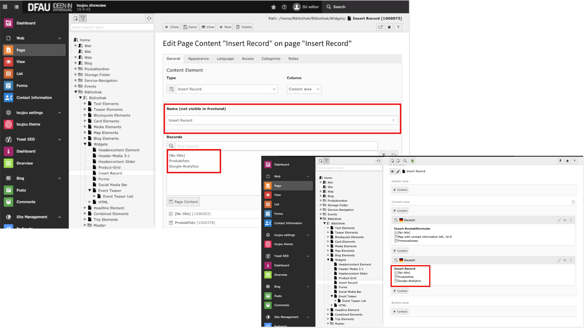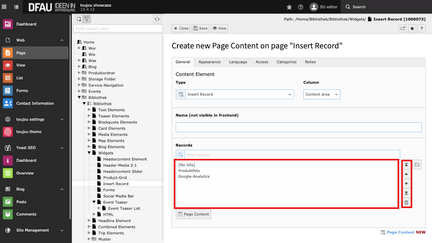 - After saving, you can also see which inserted elements are in the Insert Record.