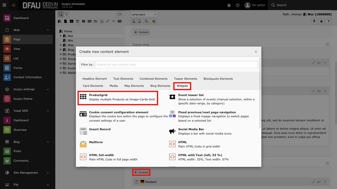Before you can create a Product Grid, you need the individual product subpages from which the Product Grid widget can feed its selection and its display in the front end. Learn how to create product pages in these tutorials: