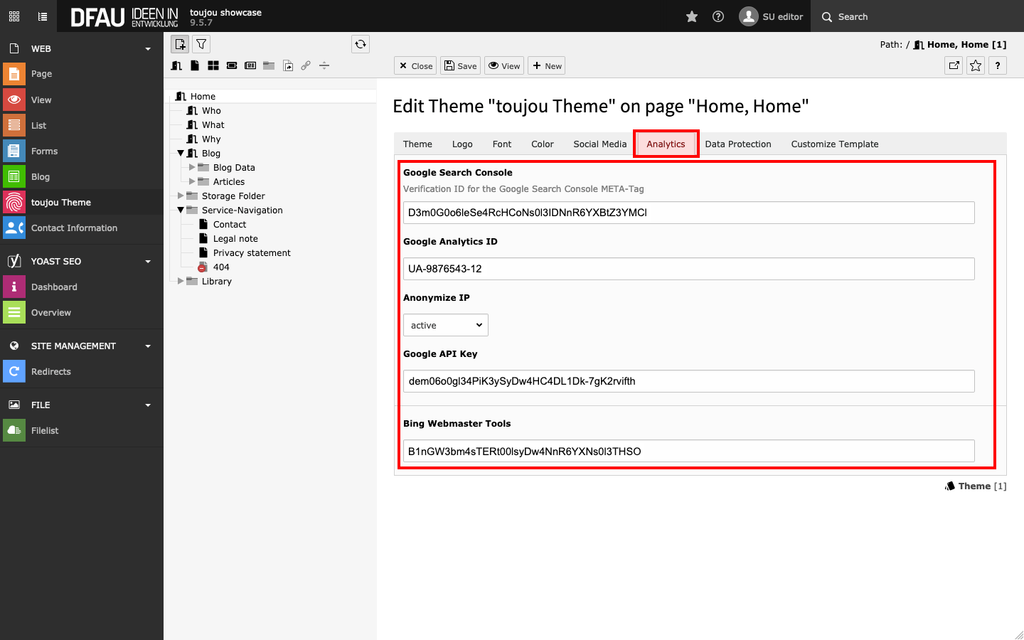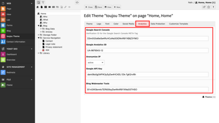 - Bing Webmaster Tools: Enter your ID tag provided by Bing to make use of their analytics services.