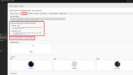 - Under Required contrast ratios for WCAG compliance, you will find additional information about the color contrasts.