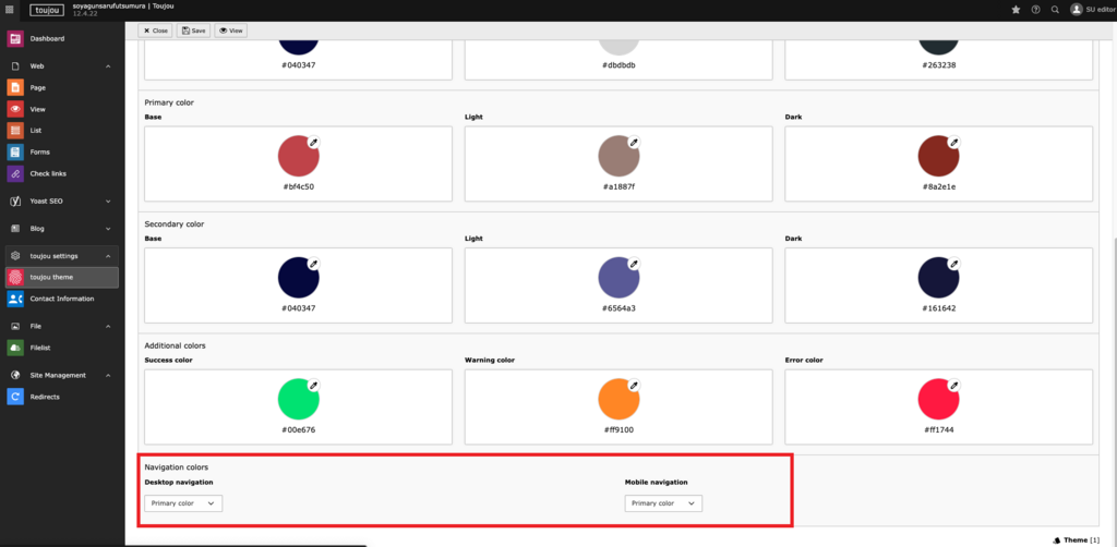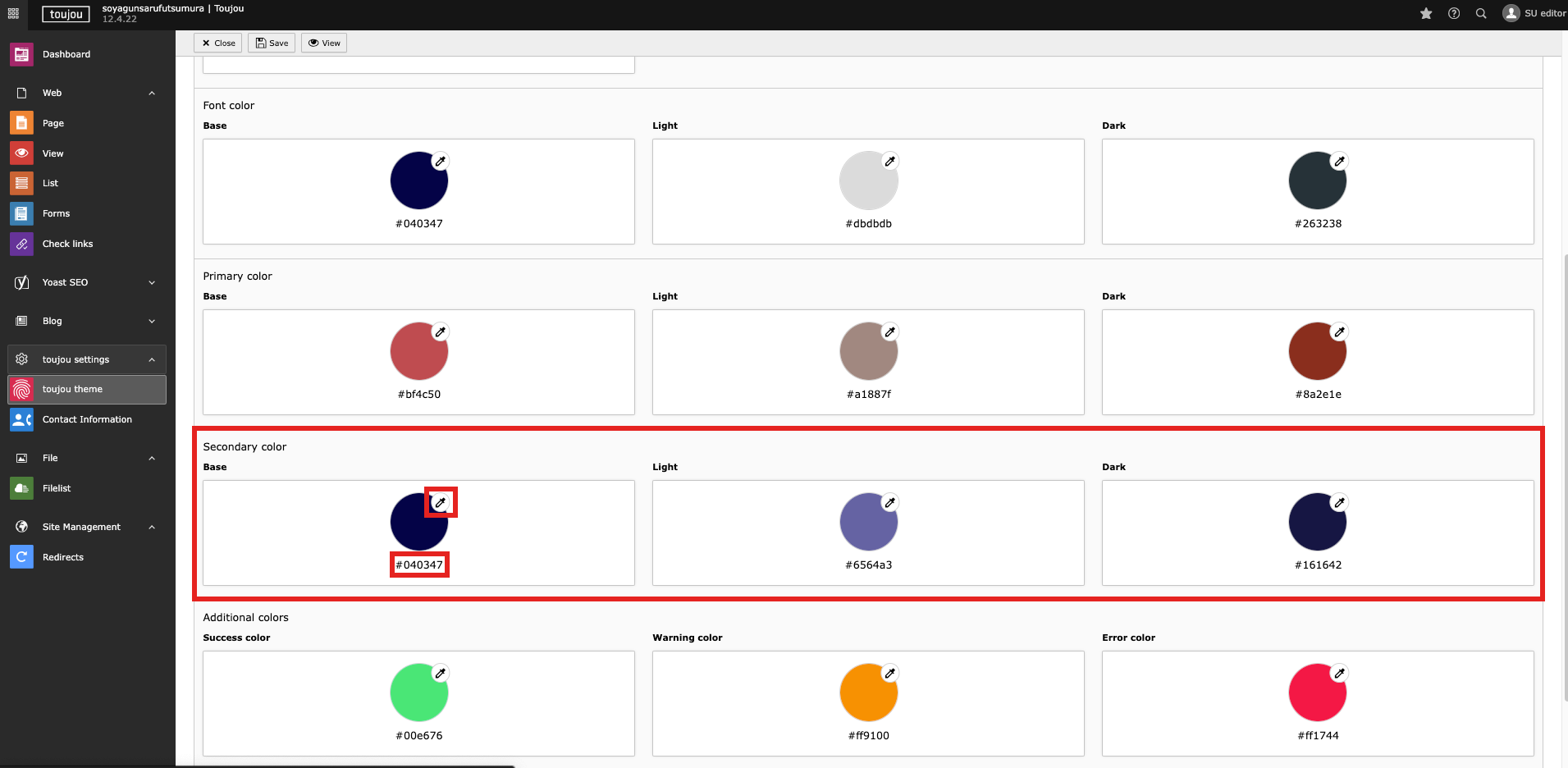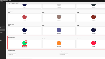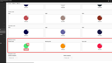 - For setting your primary colors of your website, you can also define a base value including a light and a dark variant.