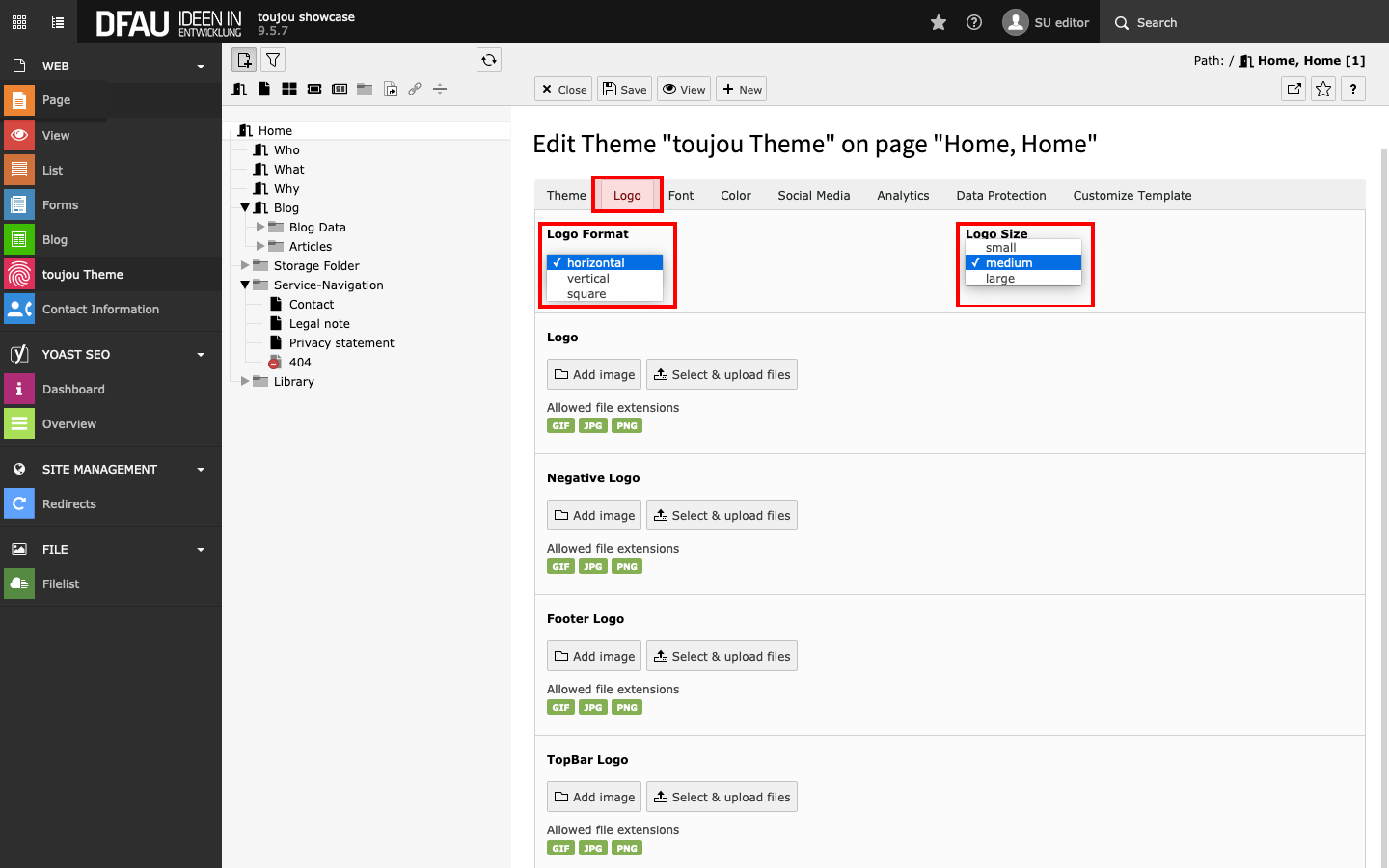 Within the Logo Settings, you have several options to upload your logo or versions of it. The use of all possibilities is not necessary, for example if you only have one or few logo variants.