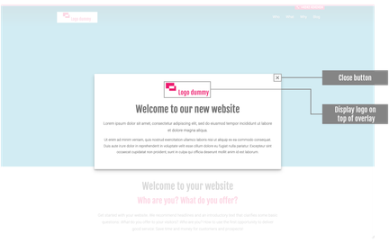 - Display logo on top of overlay: Set the switch to green if your logo is to be displayed above your content.