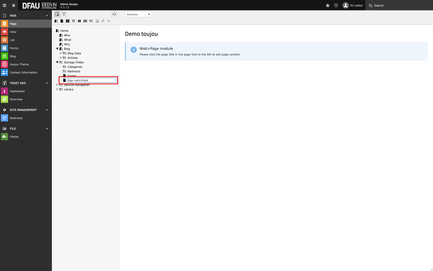 - Stay in the Page module and click on the newly created page in the page tree.