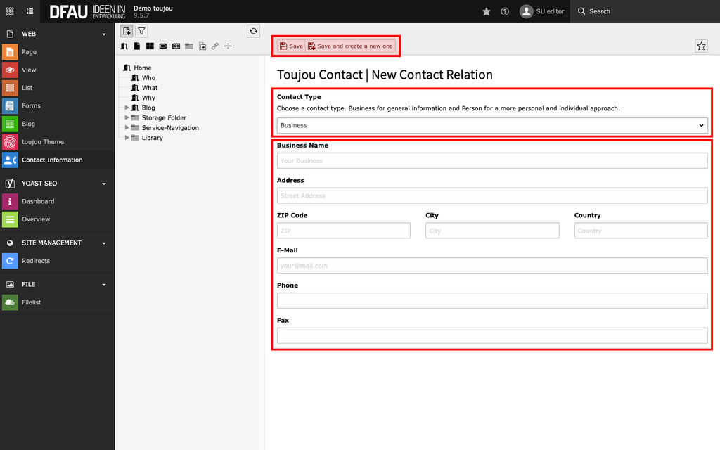 - Save the entry with the button Save or Save and create new at the top of the page.