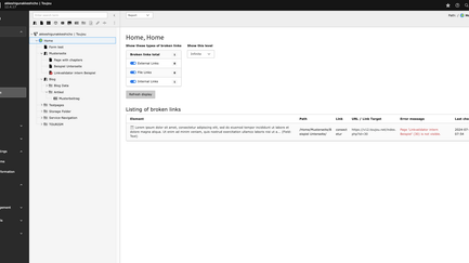 The link validator provides you with all broken links on your website. Internal links, external links and file links can be listed. Website editors can thus see at a glance where broken links are hidden - and edit them.
