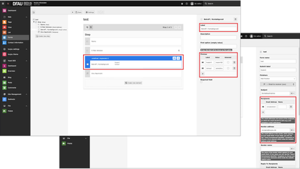 - Make sure that the field e-mail address of the sender always contains the address of the domain (e.g. noreply@domain.de). The »text-2« application described from minute 3'05'' is no longer common.