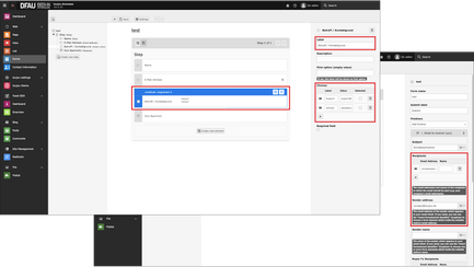 - Enter the Single Select field with the curly brackets as the destination address in the E-mail adress field in the Recipient area of your finisher, for example like this: {singleselect-2}.