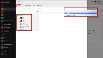 - Then select the page you want to link to. You may need to expand the page tree to find the respective page.
