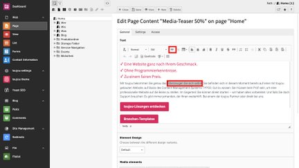- After clicking on the desired page, the pop-up window will close again. The linked text will be highlighted in color. To highlight the link, set link buttons.