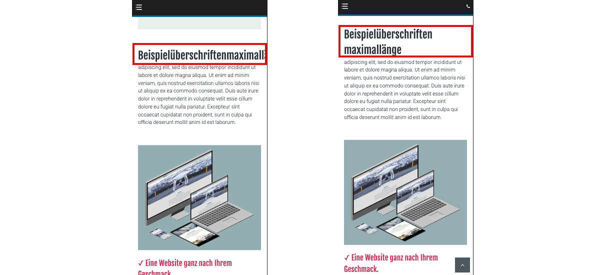 This option is especially relevant when looking at mobile devices. If a word (depending on the device) is wrapped at a certain point in the frontent, no hyphen is displayed. If there is no break, the word is displayed in its entirety.