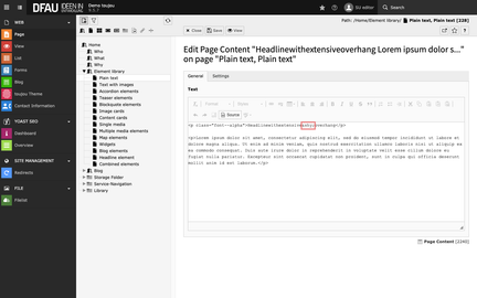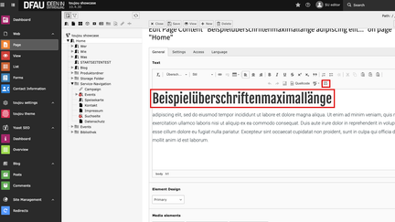 If you want to separate a word within an element due to its length without using a hyphen, use the HTML tag <wbr/>. To force the line break, click the break icon in the RTE at the desired position in the word.