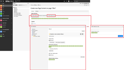 - If you decide you want to embed a video as a file, click on Add media file. If you haven't uploaded the video yet, you can add it easily by browsing through your storage and selecting the element. Then click Upload and select the desired media item in the corresponding folder. To ensure a properly functioning video make sure you do not exceed the maximum allowed file size.