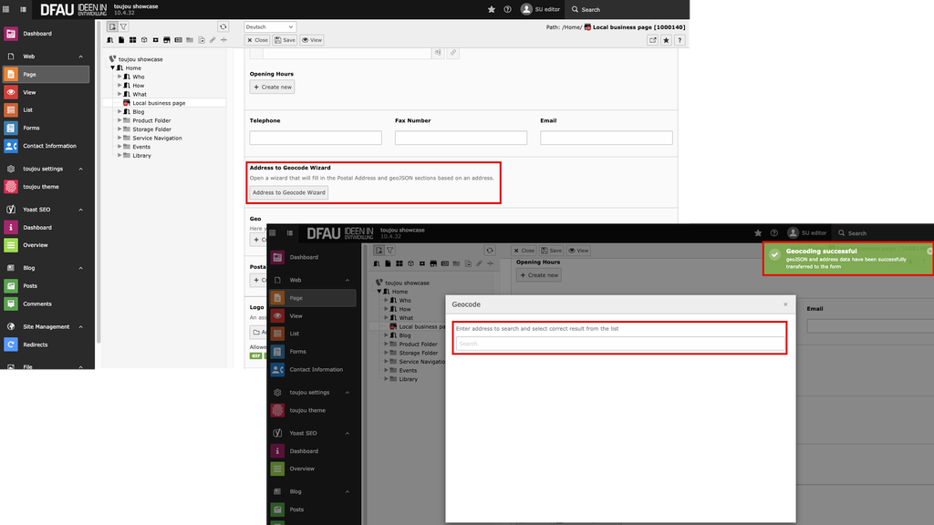 Presenting your own locations such as branches or partners on your website is easy with toujou. All you need to do is create a local business page in the TYPO3 back end and add the desired information. All local business pages created by you can be displayed by using the location finder. In this tutorial we will go through every single step from creating the page to adding the relevant information.