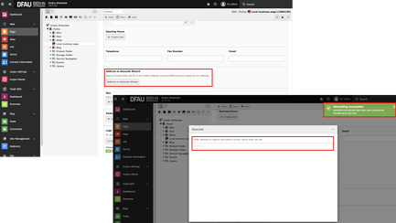 - If everything went fine, a green box will appear in the upper right corner with the confirmation of your data. In addition, you can also check the data in the section Geo (below the Geocode Wizard). If the data was correct, the geocode will appear automatically there.