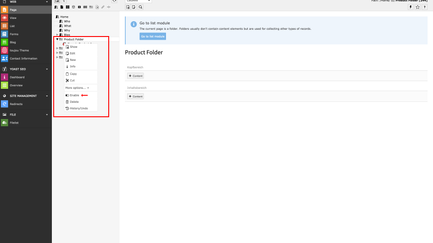 - We have already created a product folder for the tutorial. Product pages can also be placed below landing pages and/or portfolio/overview pages.